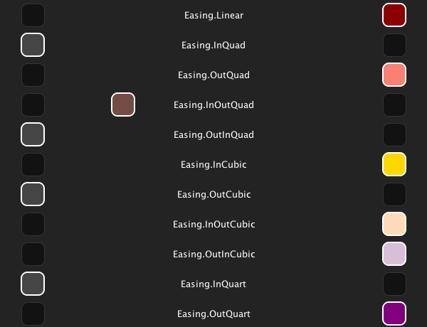 This example shows the different easing modes available for animations.