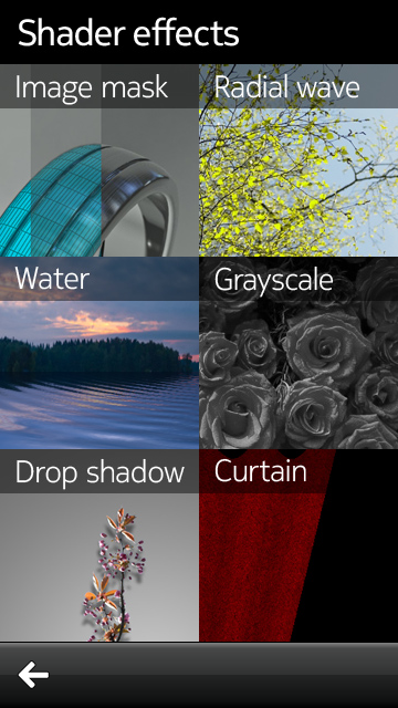 This example shows how to create visual effects by using OpenGL shading language together with QML using ShaderEffectItem and ShaderEffectSource APIs.