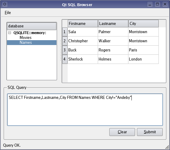 The SQL Browser demonstration shows how a data browser can be used to visualize the results of SQL statements on a live database.