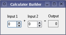 We use the form created in the Calculator Form example to show that the same user interface can be generated when the application is executed or defined when the application is built.