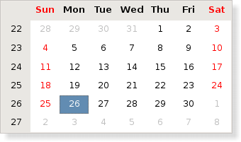 The QCalendarWidget class provides a monthly calendar widget that can be used to select dates. |
