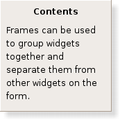 The QFrame widget provides a simple decorated container for other widgets. |