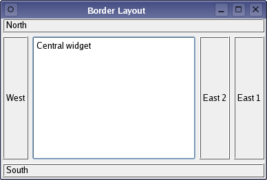 The Border Layout example shows how to create a custom layout that arranges child widgets according to a simple set of rules.