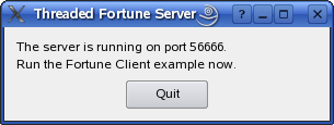 The Threaded Fortune Server example shows how to create a server for a simple network service that uses threads to handle requests from different clients. It is intended to be run alongside the Fortune Client example.