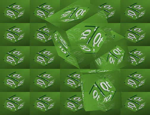 The Framebuffer Object 2 example demonstrates how to use the QGLFramebufferObject class to render into an off-screen buffer and use the contents as a texture in a QGLWidget.
