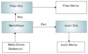 The playback is started and managed by the media object, which send the media stream to any sinks connected to it by a path. The sink then plays the stream back, usually though a sound card.