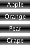 import QtQuick 1.0 Column { spacing: 10 Button { text: "Apple" } Button { text: "Orange" } Button { text: "Pear" } Button { text: "Grape" } }