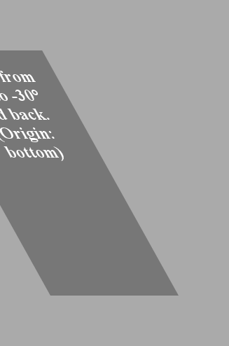 Finally, the demonstrations of rotate, scale, and skew 2D transforms that opened this section all rely on separate keyframe animations to slide in and manipulate a series of panels. Separate -webkit-animation-delay settings for each panel control the sequence of each presentation.