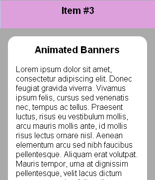 The following example uses a keyframe animation to scroll through banner options at the top of the screen: