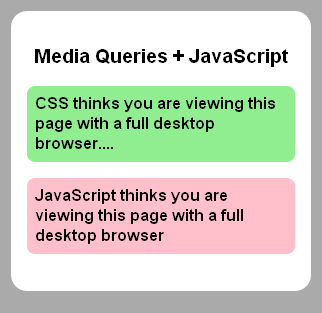 The following example demonstrates a simple message identifying your class of browser, which appears dynamically based on CSS that is linked using media types and media query syntax: