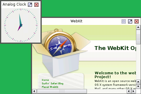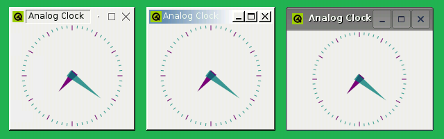 This causes all windows opened by this application to use our decoration. To demonstrate this, we show the analog clock widget from the Analog Clock Example, which we build into the application: