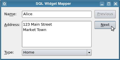 The SQL Widget Mapper example shows how to use a map information from a database to widgets on a form.