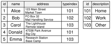 We create an "addresstype" table containing the identifiers used in the "person" table and the corresponding strings: