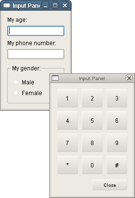 The Input Panel example shows how to create an input panel that can be used to input text into widgets using only the pointer and no keyboard.