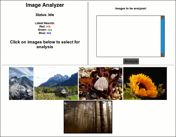 Initially, you will see a user interface with an empty list of images. Clicking on some of the images in the lower pane below adds them to the list view above, as shown in the screenshot below.