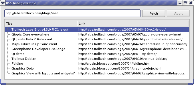 This example shows how to create a widget that displays news items from RDF news sources.